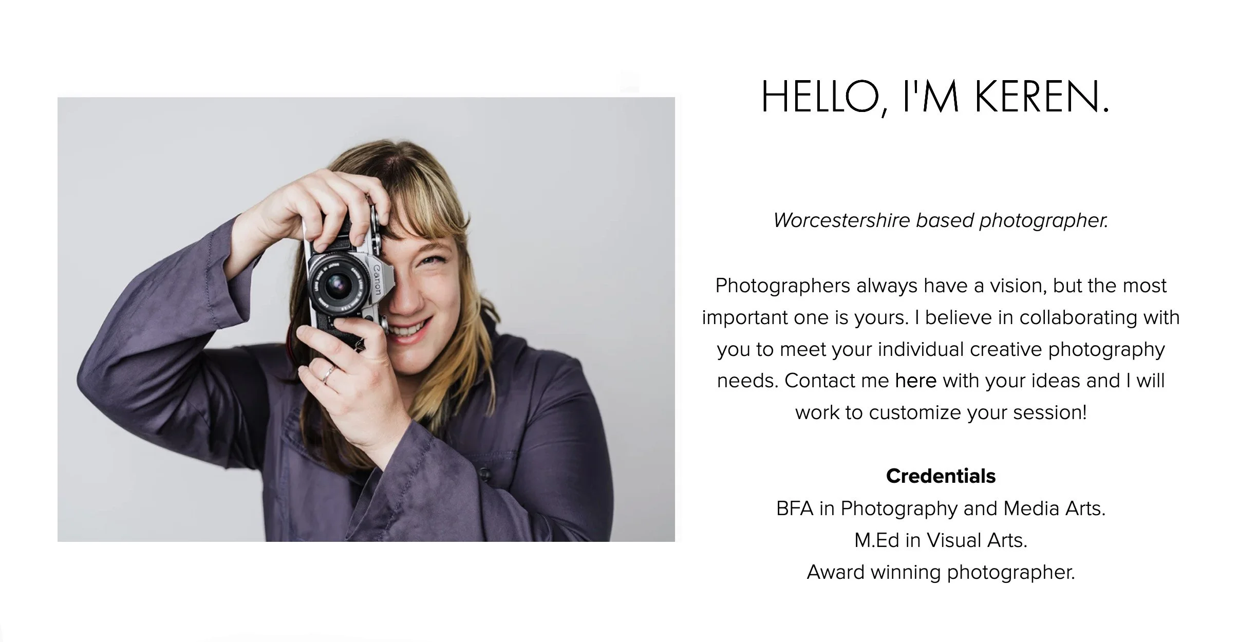 I have never felt more comfortable or confident in front of a camera. Keren has always gone above and beyond to make sure I feel at home, wether I’m actually at home or in an old barn. And the quality, oh I could speak for hours on the quality. Every single image I’ve received from her has been beautiful. She has a way of catching the small details that make images all the more meaningful. I would HIGHLY recommend Keren.